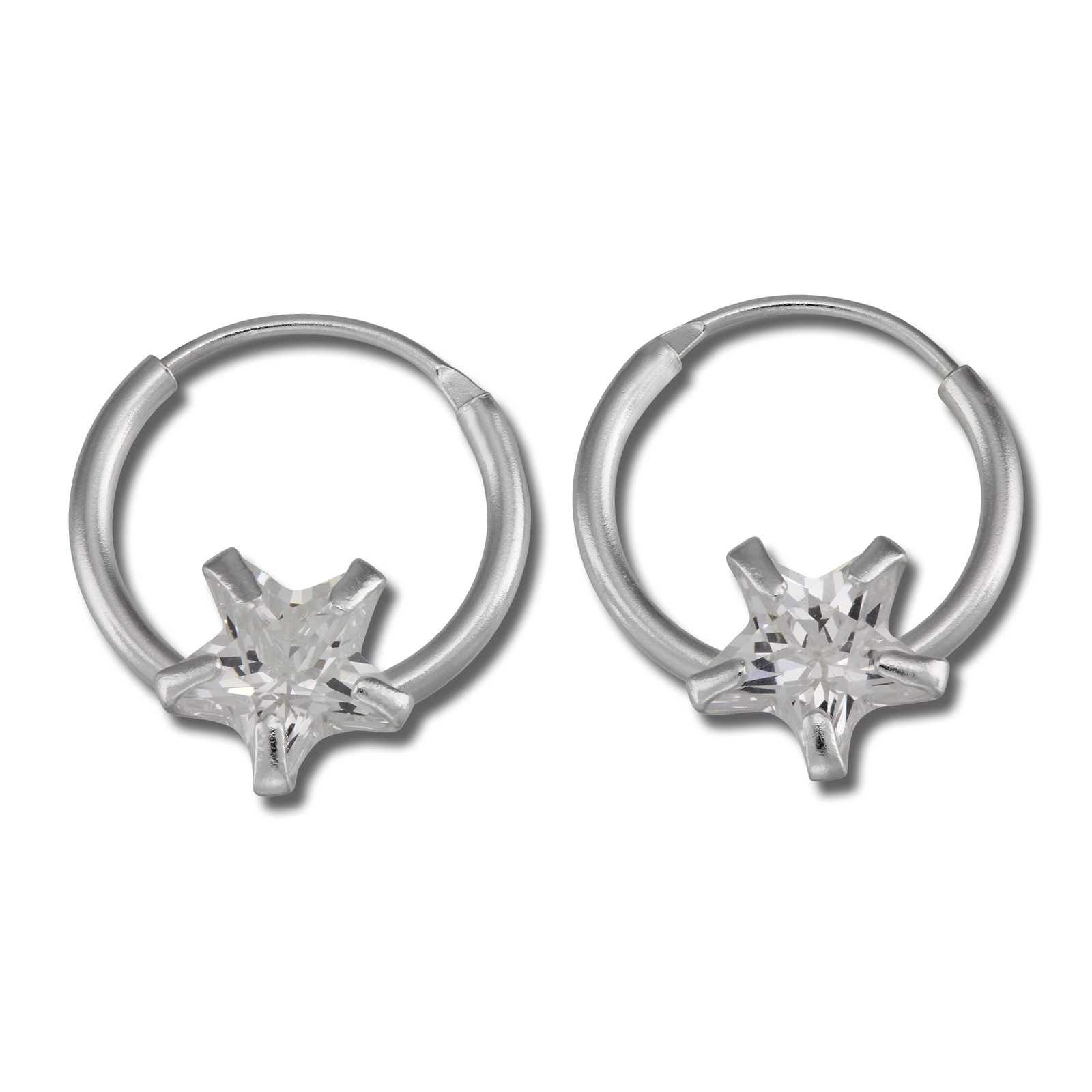 Teenie-Weenie Kinder Ohrringe weiß Creolen Stern Zirkonia 925 Silber SDO8704W
