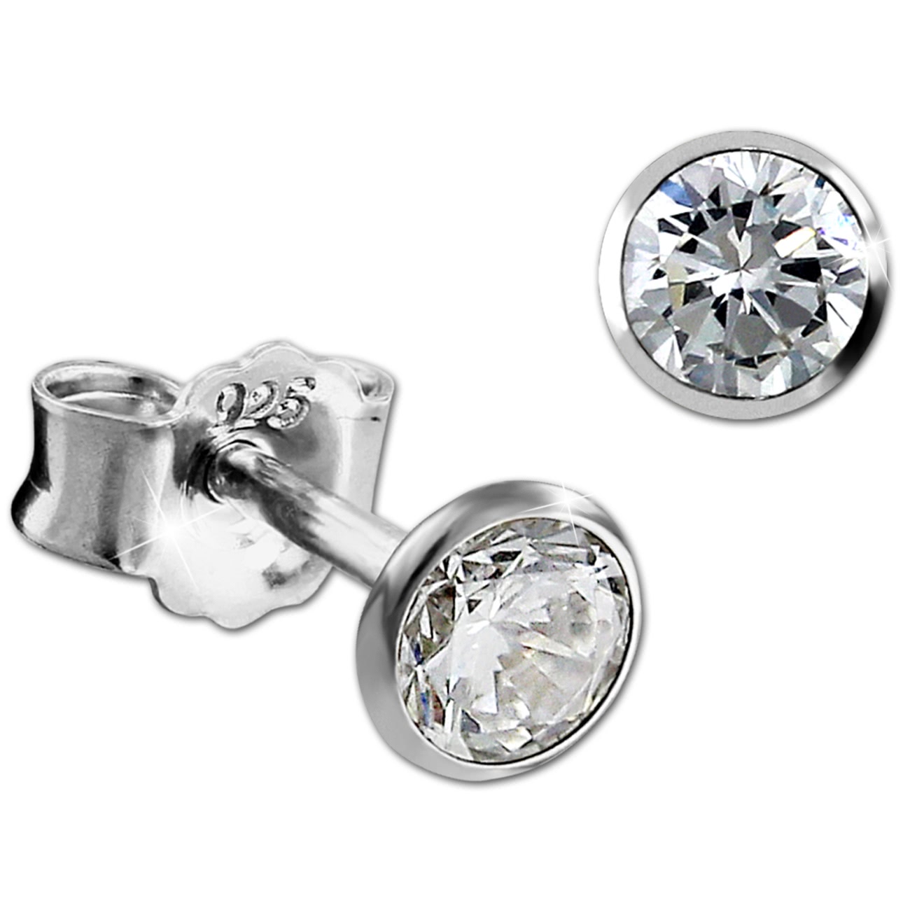 SilberDream Damen Ohrstecker 4mm weiß Zirkonia 925 ECHT Silber Ohrringe SDO9204W