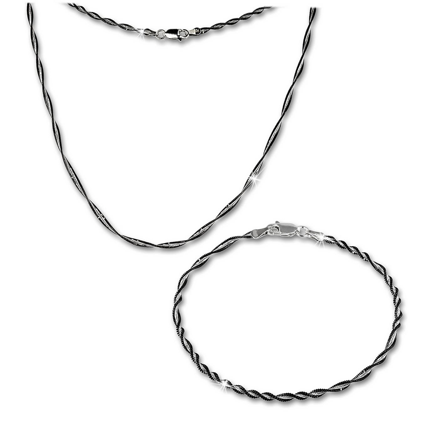 Das Produkt besteht aus 925er Sterling Silber, Schwarzrhodium und gedreht (925 Sterling Silber).
