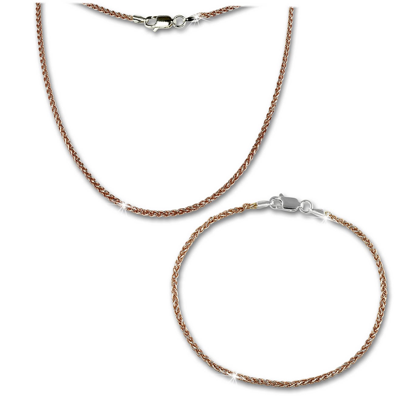 Das Produkt besteht aus 925er Sterling Silber und 333er Roségold (925 Sterling Silber und vergoldet (Roségold 333)).