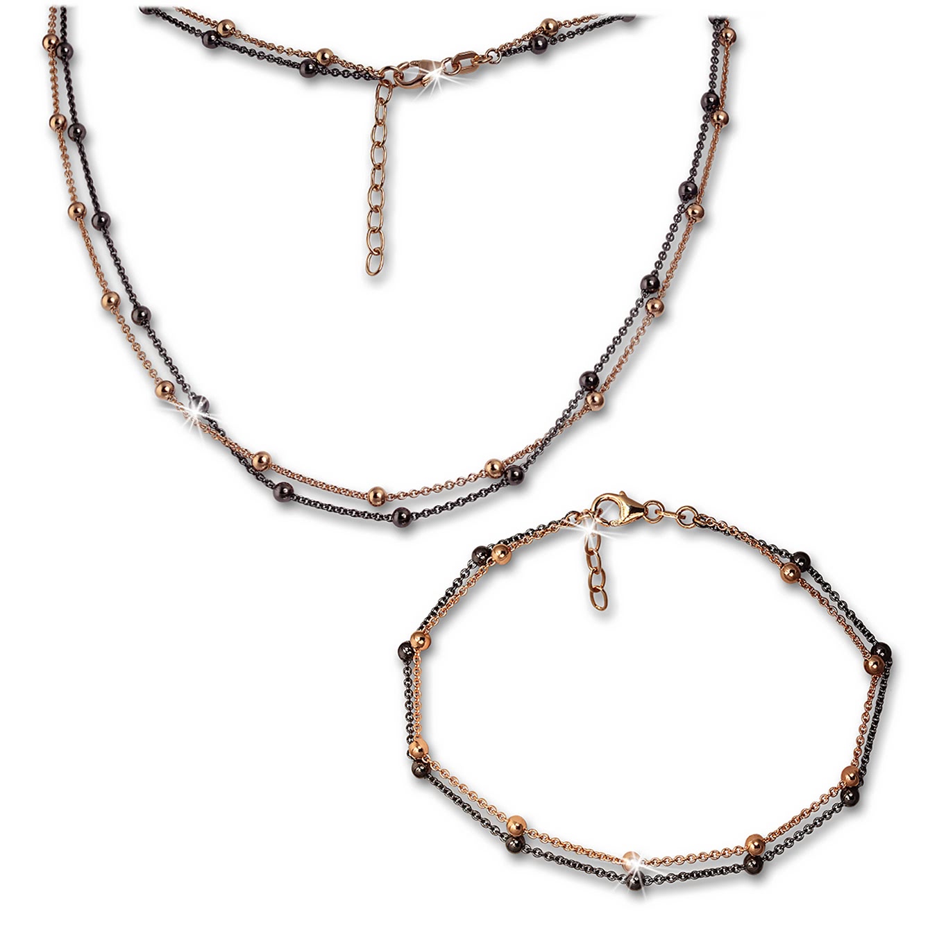 Das Produkt besteht aus 925er Sterling Silber, 333er Roségold und Schwarzrhodium (925 Sterling Silber und vergoldet (Roségold 333)).