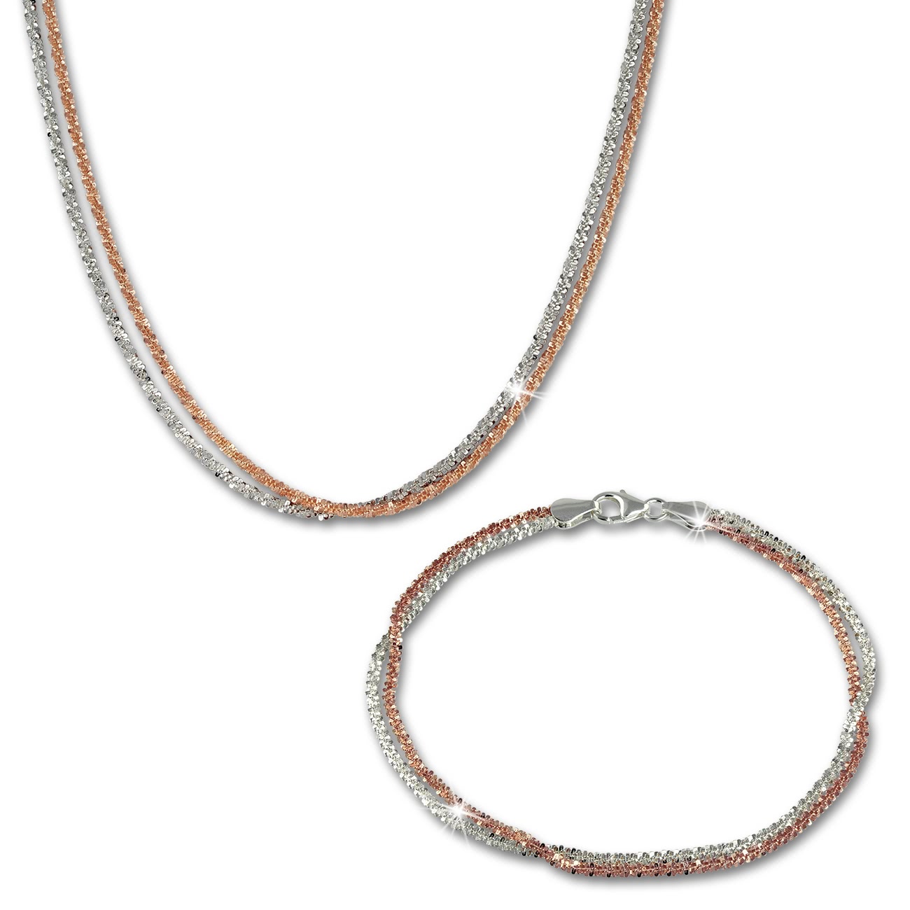 Das Produkt besteht aus 925er Sterling Silber und 333er Roségold (925 Sterling Silber und vergoldet (Roségold 333)).
