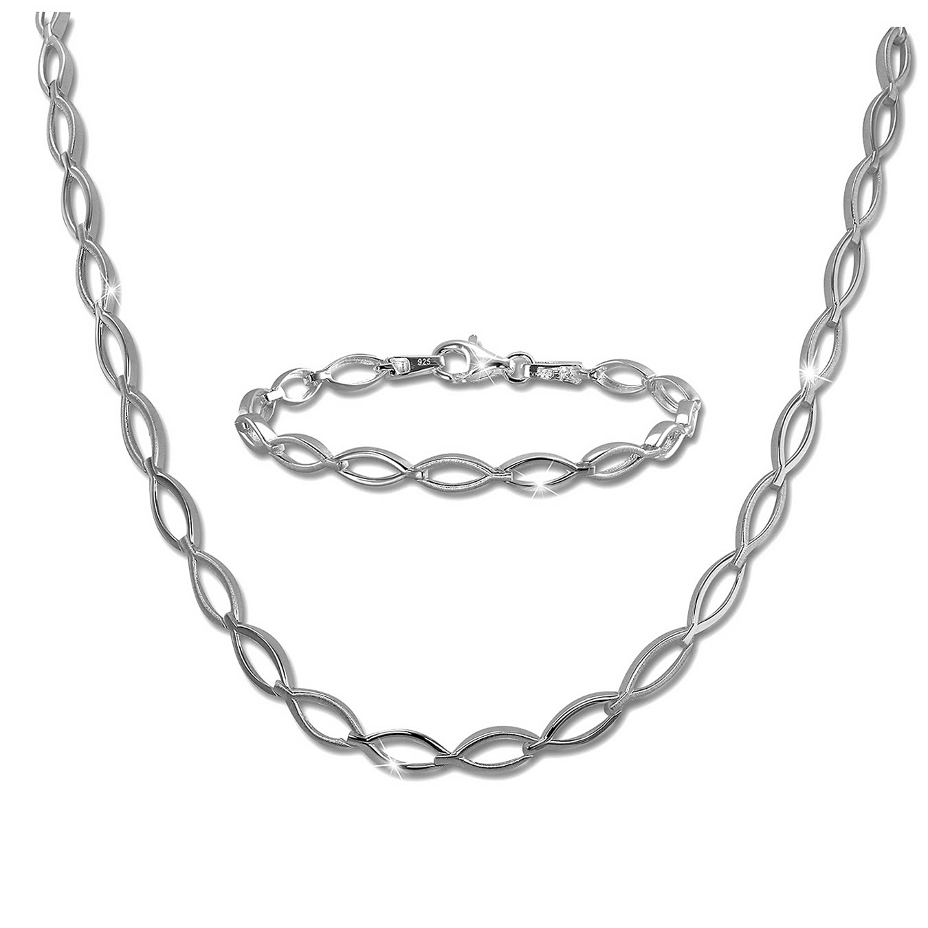 SilberDream Damen Collier & Armband Oval ECHT 925 Silber Schmuck-Set SDS455J