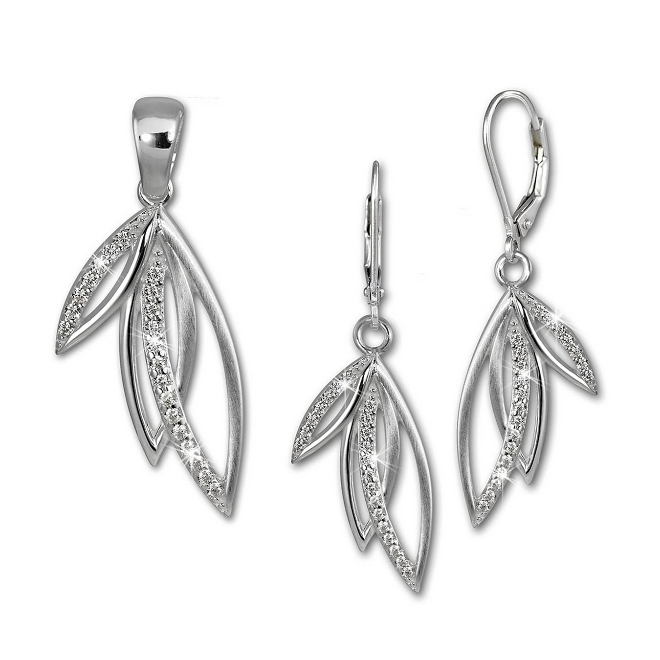 SilberDream Schmuck-Set Anhänger und Ohrringe Zirkonia Blätter Silber SDS4904W