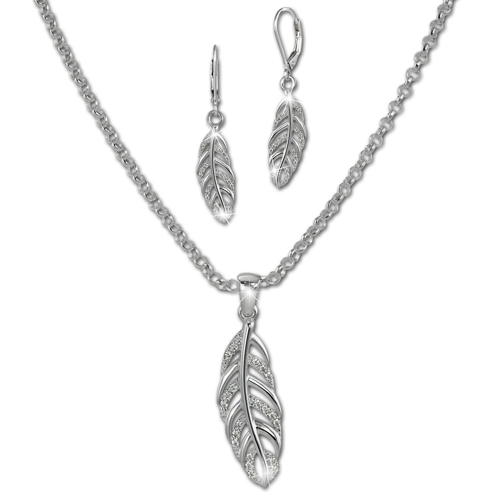SilberDream Damen Set Kette und Ohrringe 925er Echt Silber Zironia weiß SDS49063