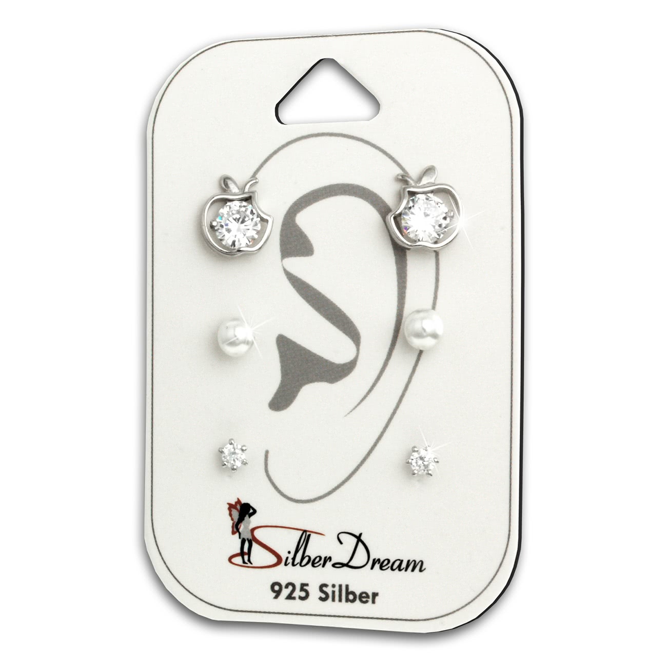 Artikelmerkmale: SilberDream Damen 3er Ohrringe Ohrstecker Zirkonia Kunstperle Set