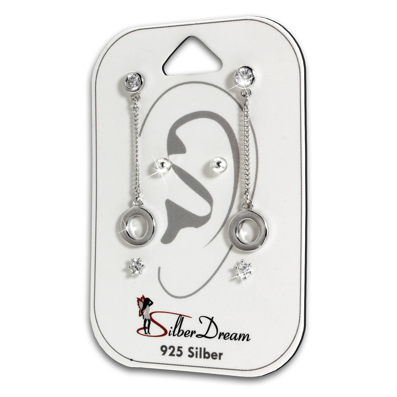 SilberDream Damen Set 3er Ohrringe Ohrstecker Zirkonia 925 Echt Silber SDS603WJ