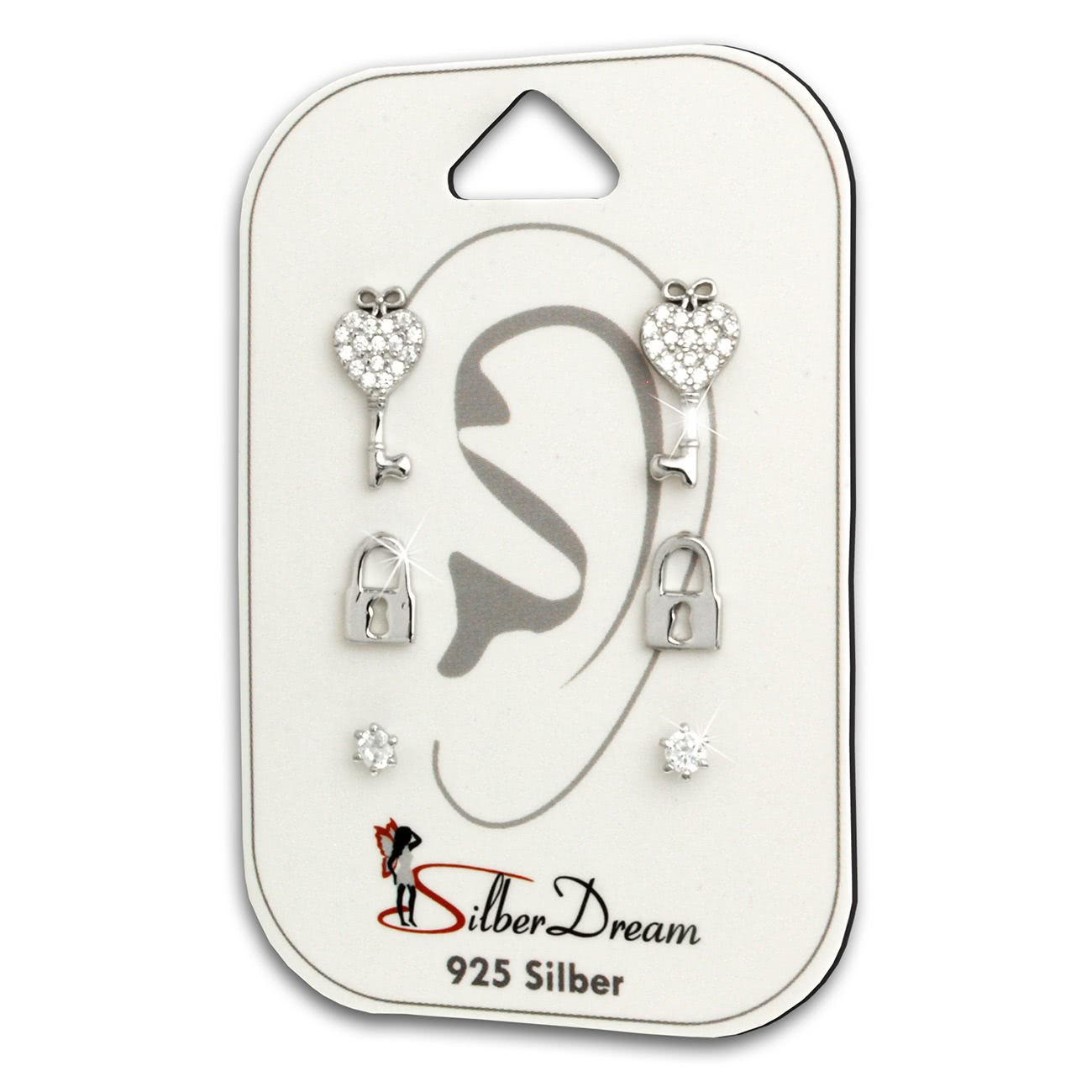 SilberDream Damen Set 3er Ohrringe Ohrstecker Zirkonia 925 Echt Silber SDS613WJ