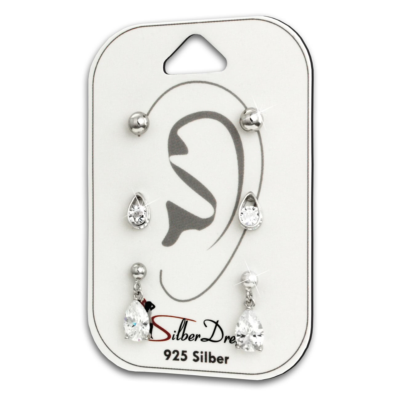 SilberDream Damen Set 3er Ohrringe Ohrstecker Zirkonia 925 Echt Silber SDS614WJ