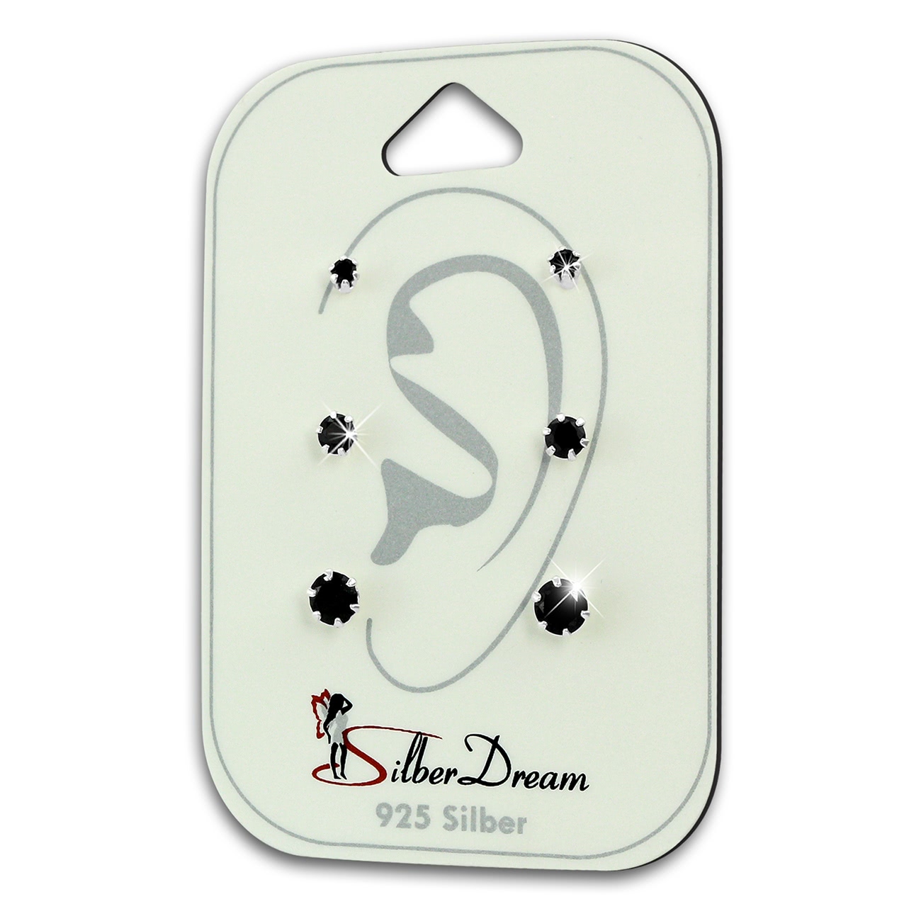 SilberDream Damen Set 3er Ohrringe Ohrstecker 925er Echt Silber schwarz SDS810S