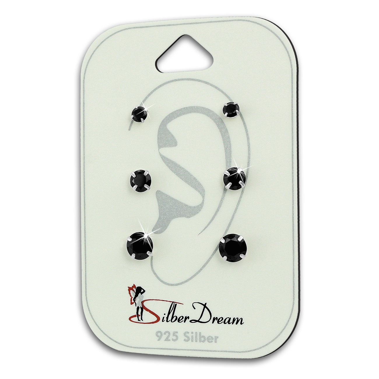 SilberDream Damen Set 3er Ohrringe Ohrstecker 925er Echt Silber schwarz SDS812S