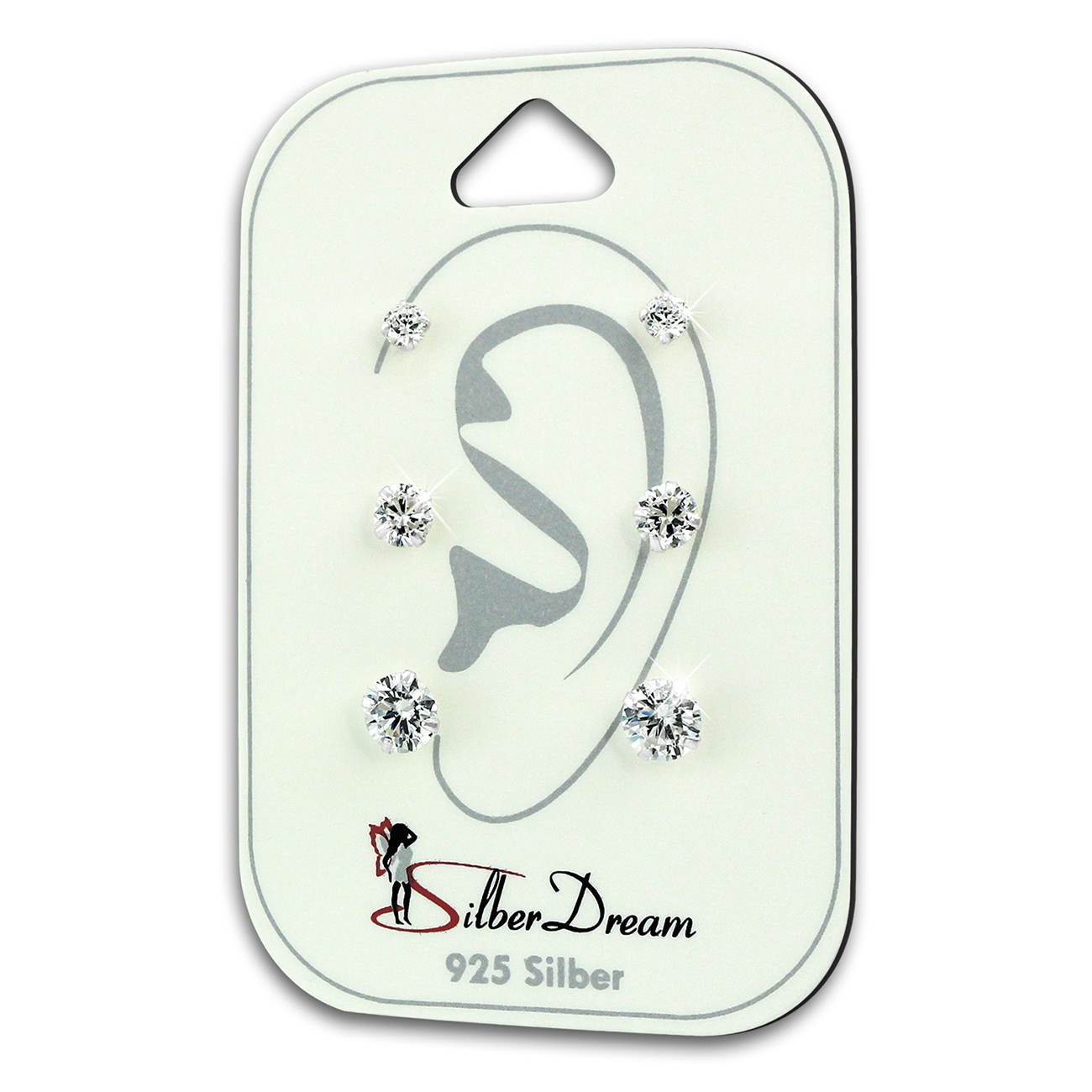 SilberDream Zirkonia Set 3er Ohrringe Ohrstecker 925er Echt Silber weiß SDS812W