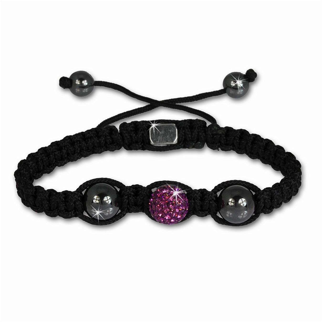 Kurzbeschreibung: SterlinX London Shamballa Armband schwarz mit 1 lila Glitzerkugel