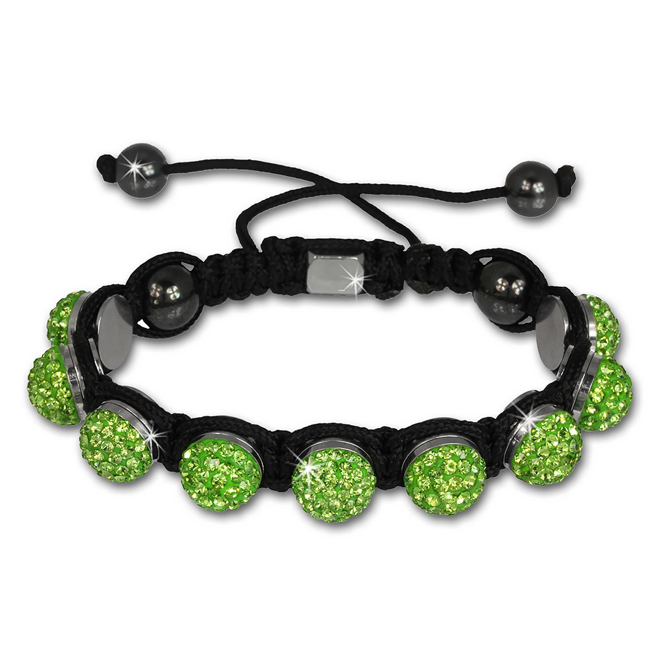 Kurzbeschreibung: SterlinX London Shamballa Armband schwarz mit 9 hellgrünen Glitzerkugeln