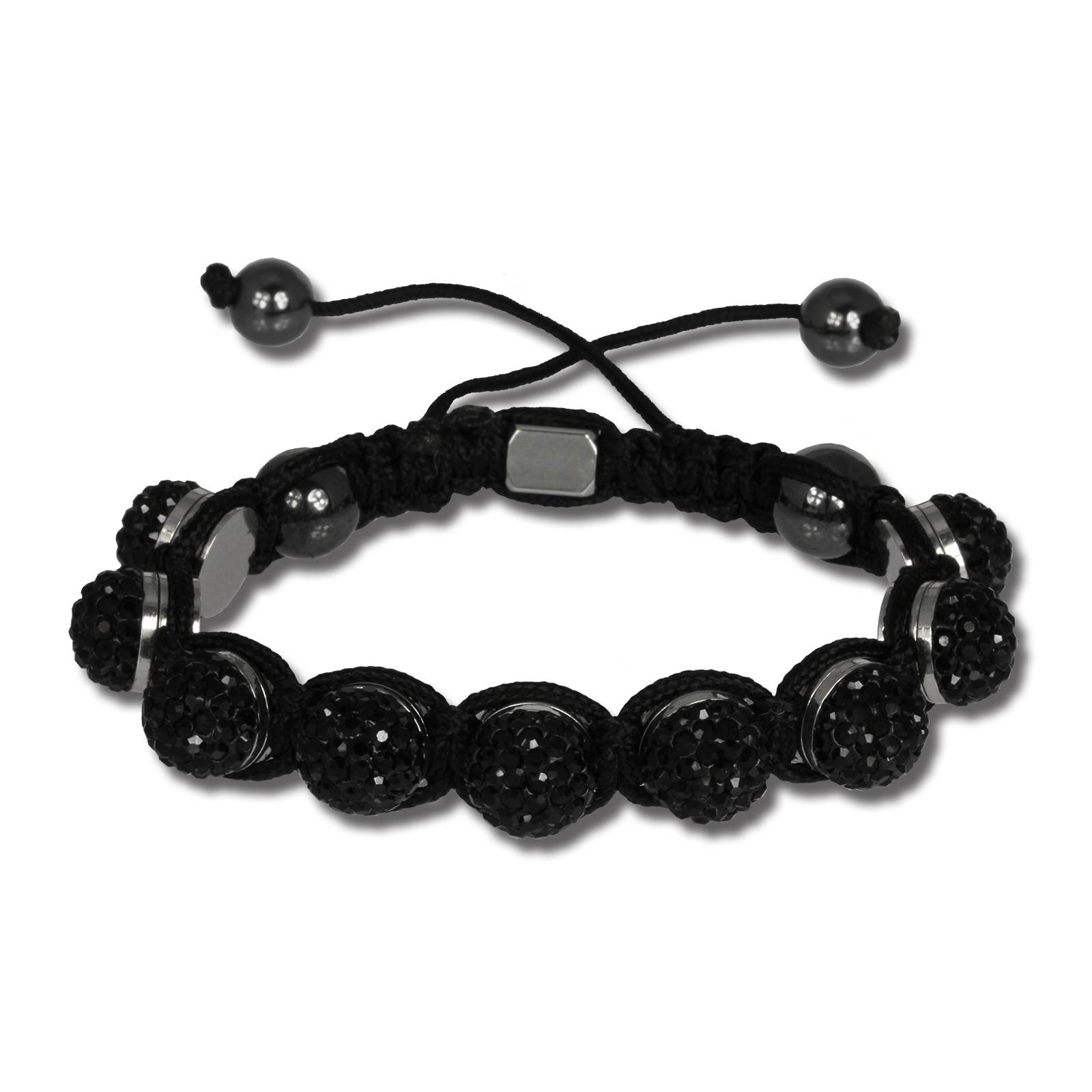 Kurzbeschreibung: SterlinX London Shamballa Armband schwarz mit 9 schwarzen Glitzerkugeln