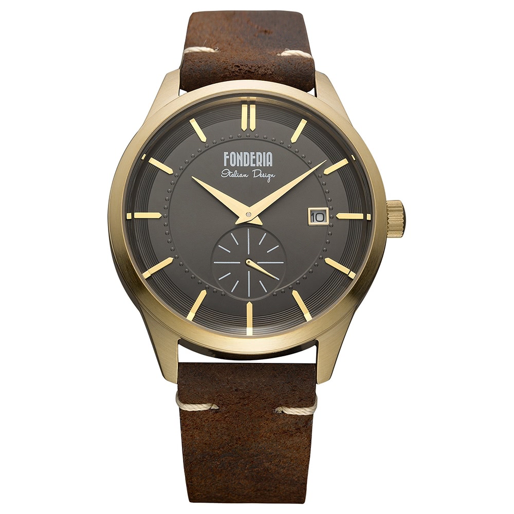 Das Gehäuse besteht aus Edelstahl und ionenplattiert Gold.