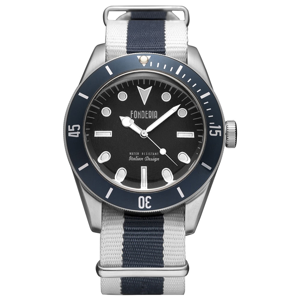 Das Gehäuse besteht aus Edelstahl und blau.