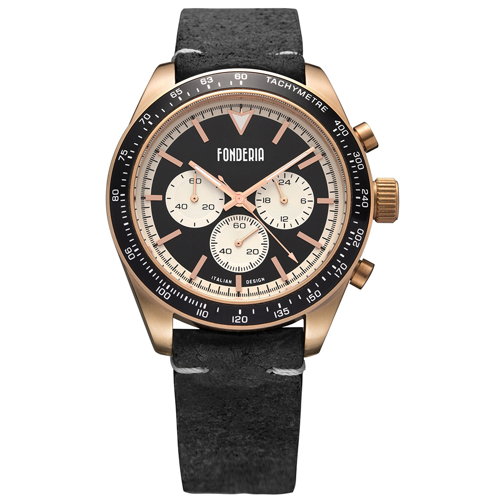 Das Gehäuse besteht aus Edelstahl und ionenplattiert Gold.