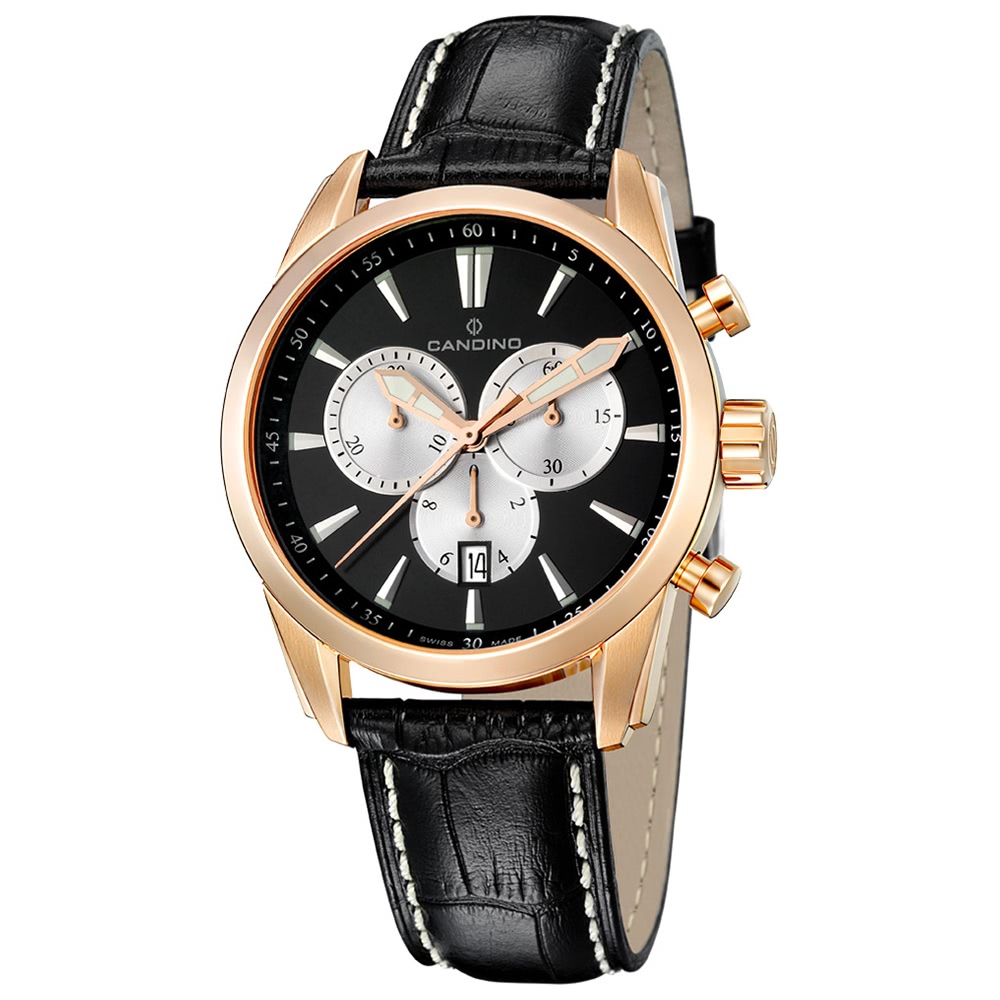 Candino Sport Herren Uhr C4409/6 Chronograph Armbanduhr Leder schwarz UC4409/6