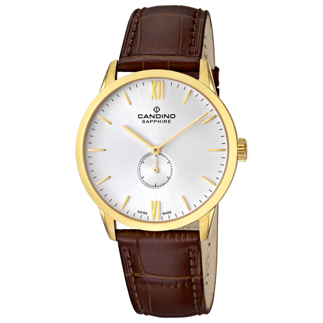 Das Gehäuse besteht aus Edelstahl 316 L Gelbgold PVD Beschichtung.