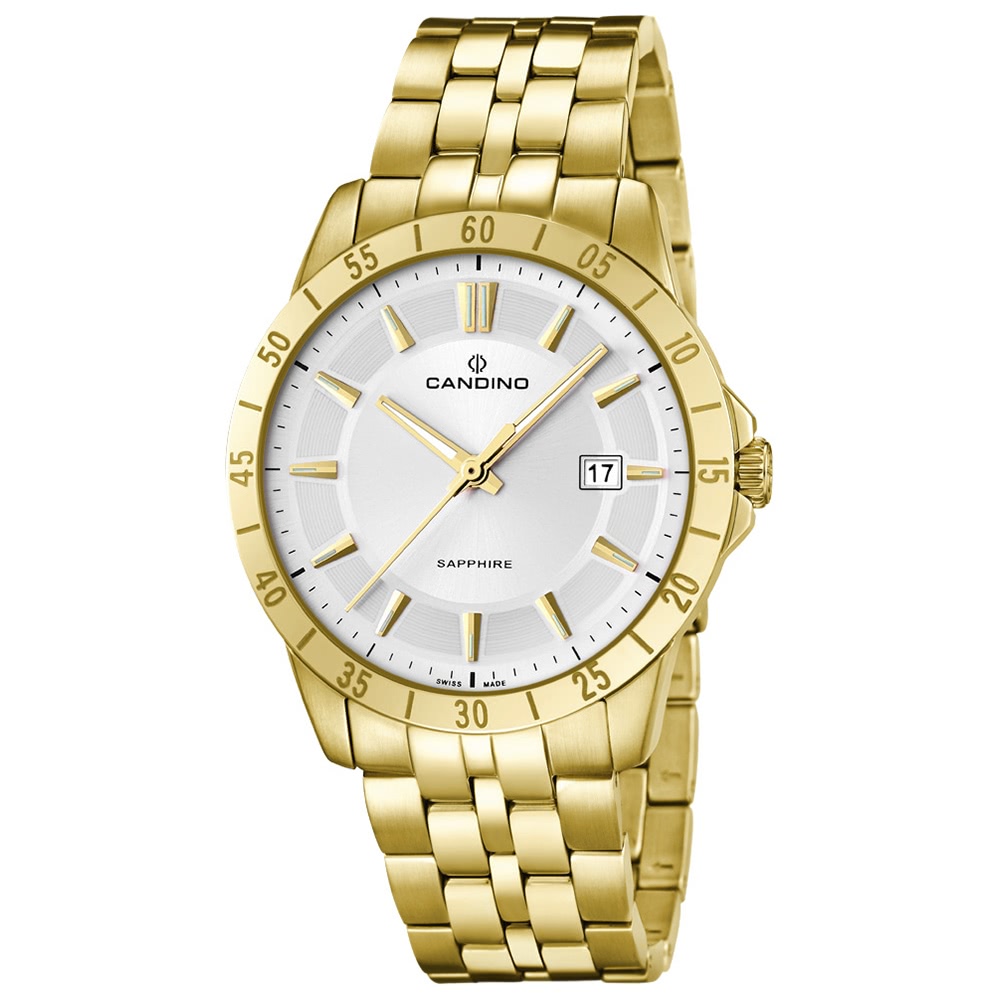 Das Gehäuse besteht aus Edelstahl 316 L Gelbgold PVD Beschichtung.