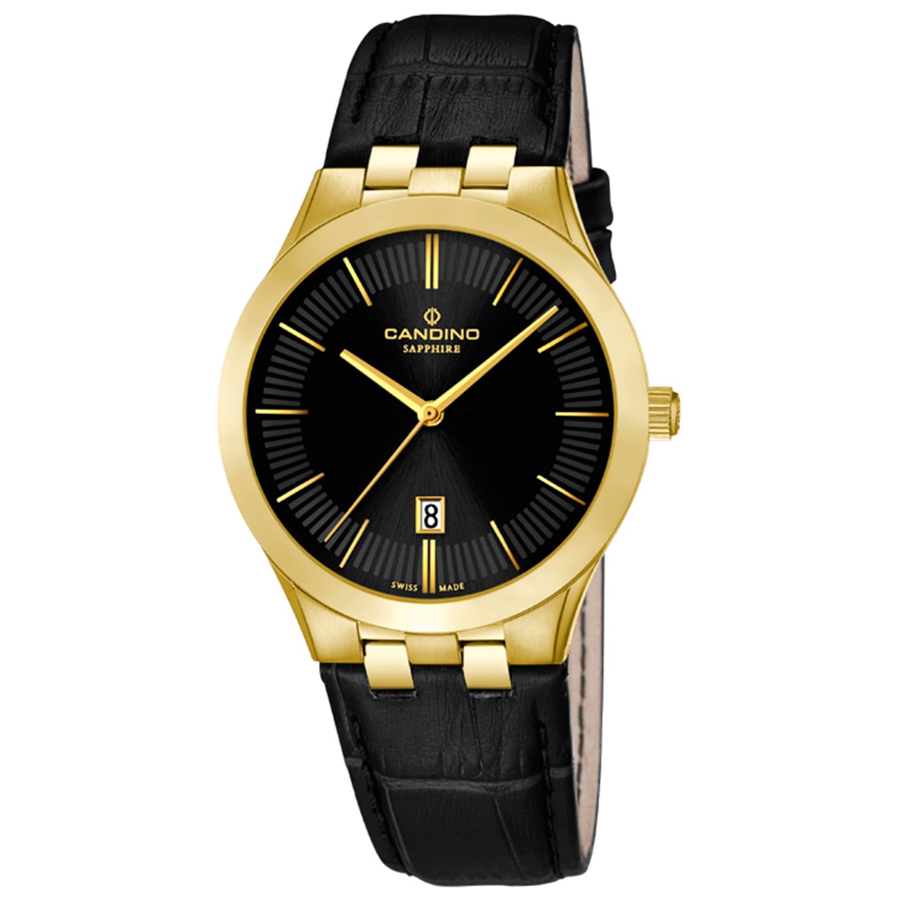 Das Gehäuse besteht aus Edelstahl 316 L Gelbgold PVD Beschichtung.