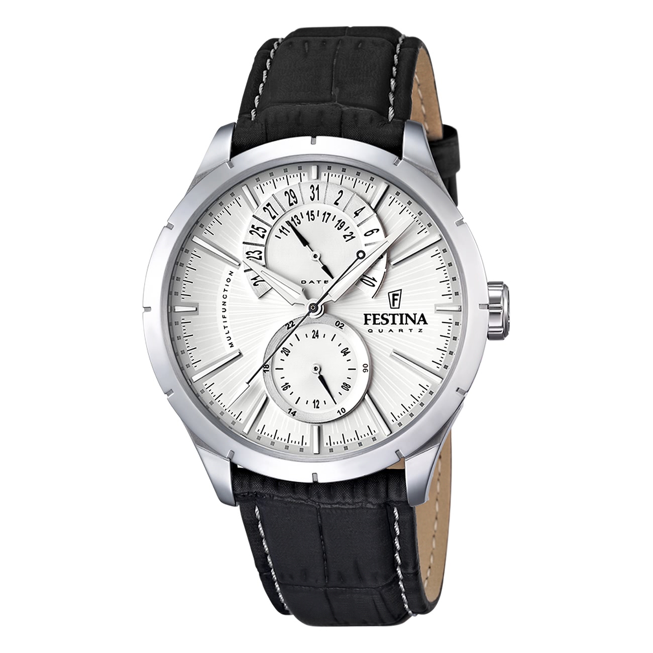 Festina Klassik Herrenuhr F16573/1 Quarz Uhr Lederarmband schwarz UF16573/1