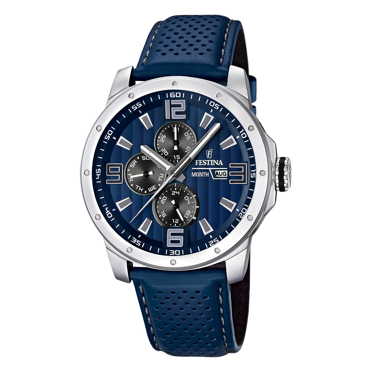 Festina Sport Herrenuhr F16585/3 Multifunktion Uhr Lederarmband blau UF16585/3