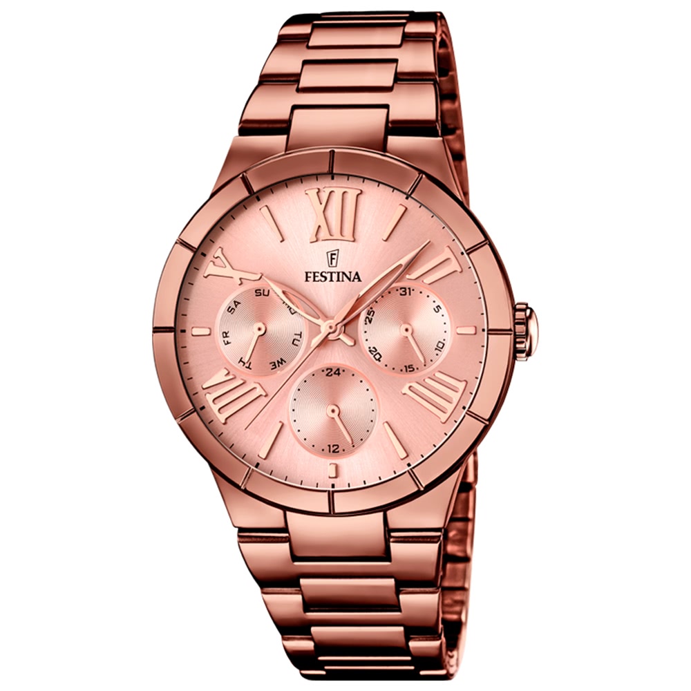 Das Gehäuse besteht aus Edelstahl und PVD Bronze.