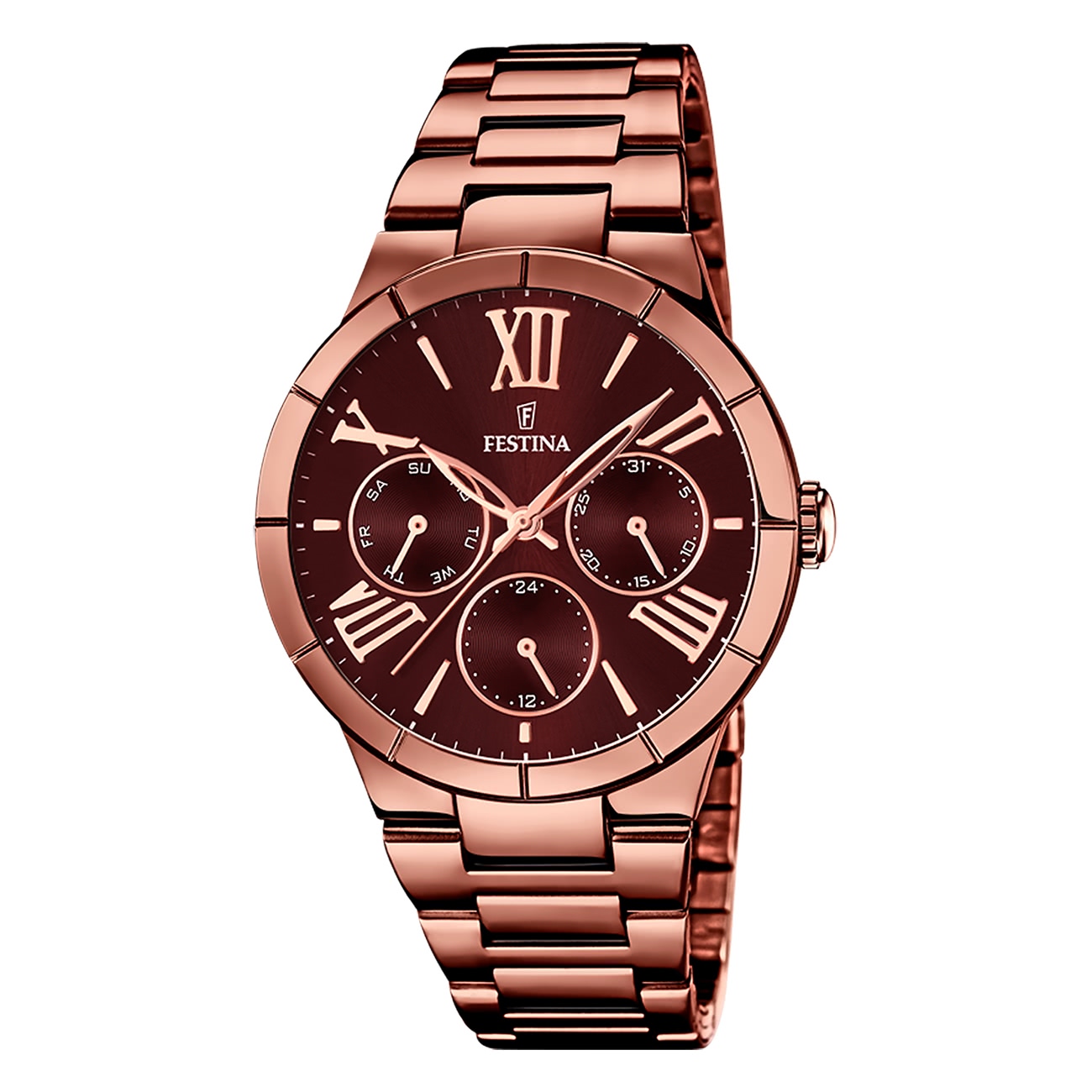 Das Gehäuse besteht aus Edelstahl und PVD Bronze.