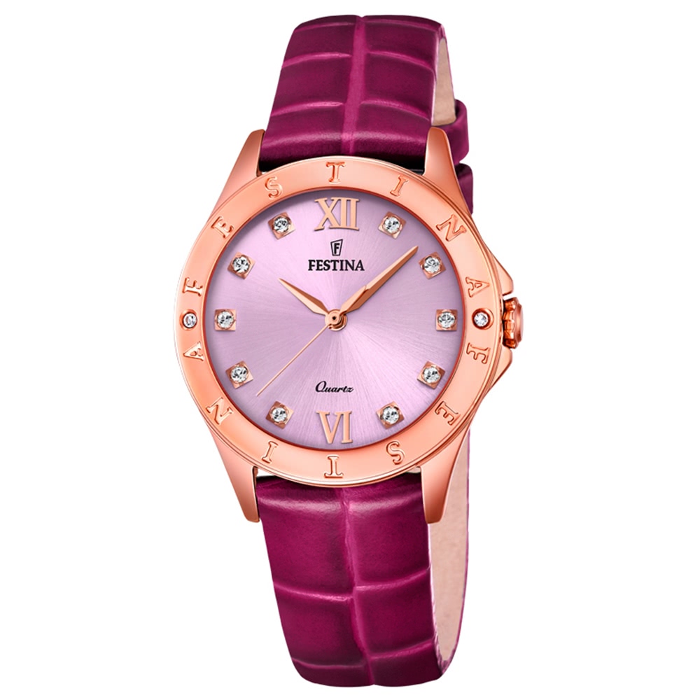 Festina Boyfriend Damenuhr F16930/B Quarz Uhr Lederarmband lila UF16930/B