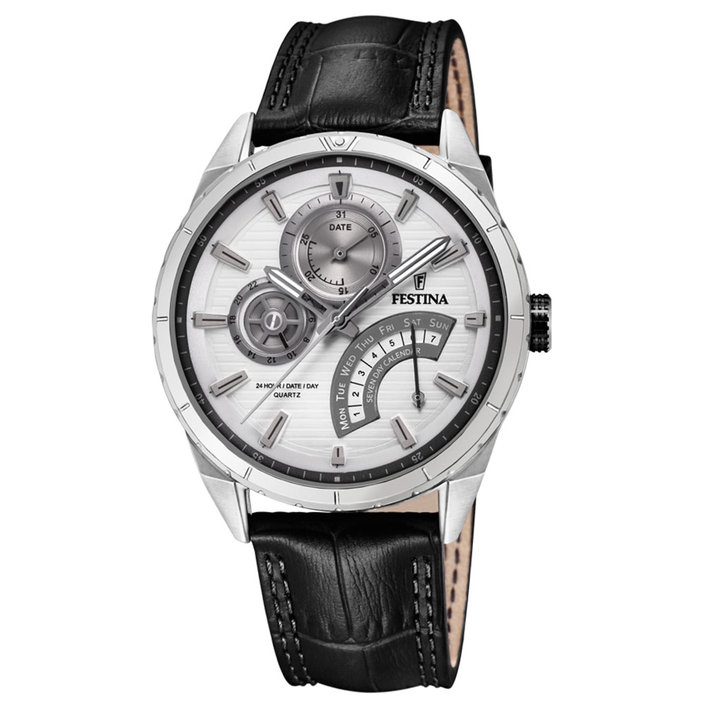 Festina Dualtime Herrenuhr F16986/1 Quarz Uhr Lederarmband schwarz UF16986/1