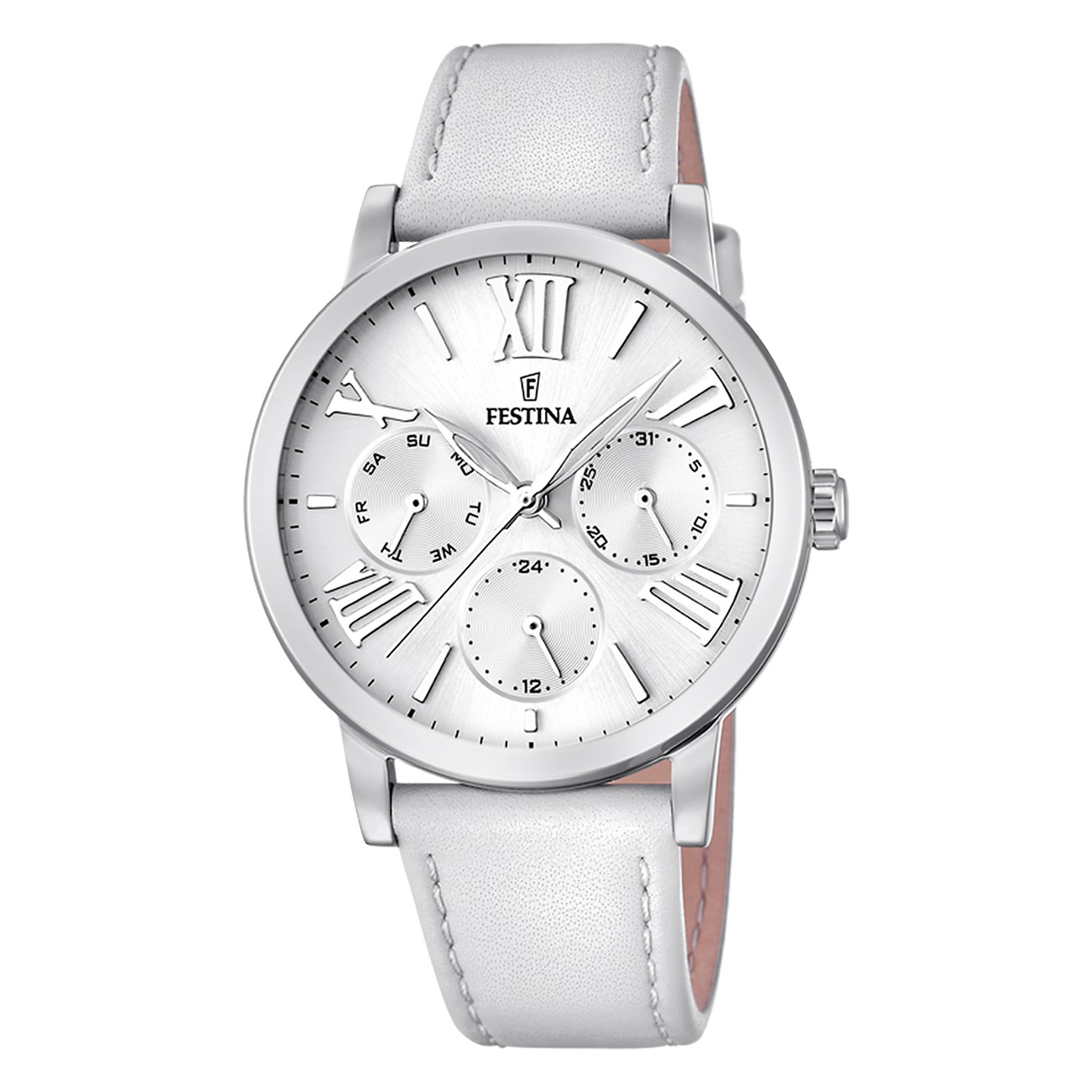 Festina Boyfriend Damen Uhr F20415/1 Elegant Armbanduhr Leder weiß UF20415/1