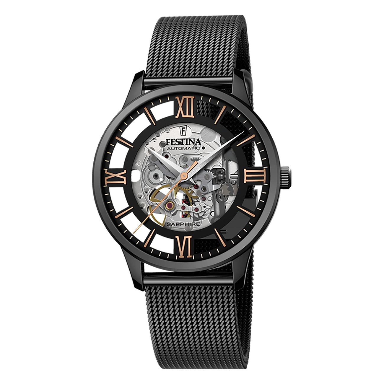 Festina Automatik Herren Elegant Armbanduhr Edelstahl schwarz UF20535/2