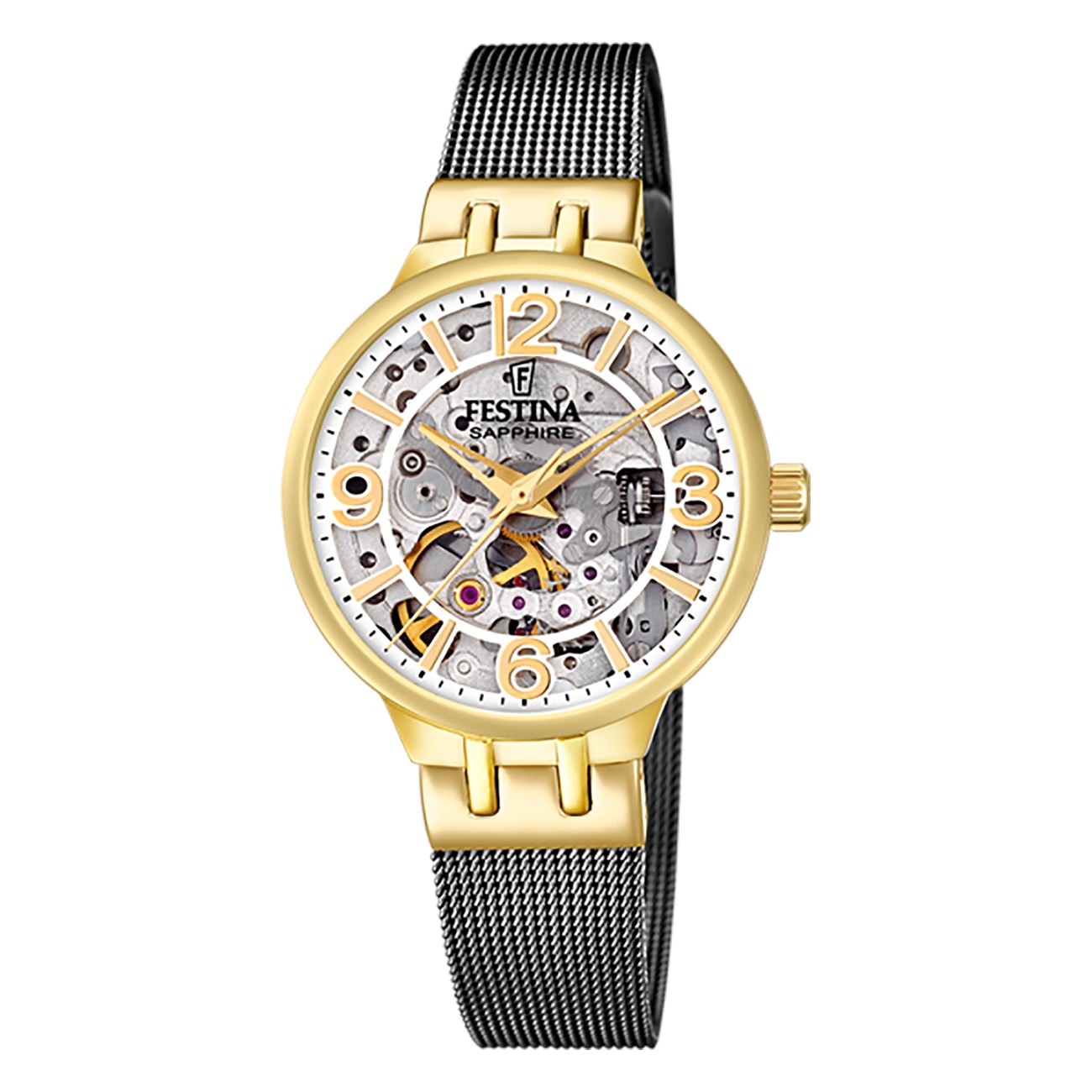 Festina Automatik Damen Elegant Armbanduhr Edelstahl schwarz UF20580/2