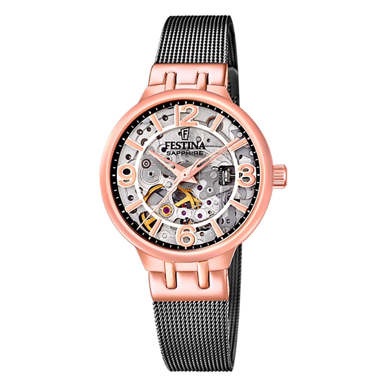Festina Automatik Damen Elegant Armbanduhr Edelstahl schwarz UF20581/3