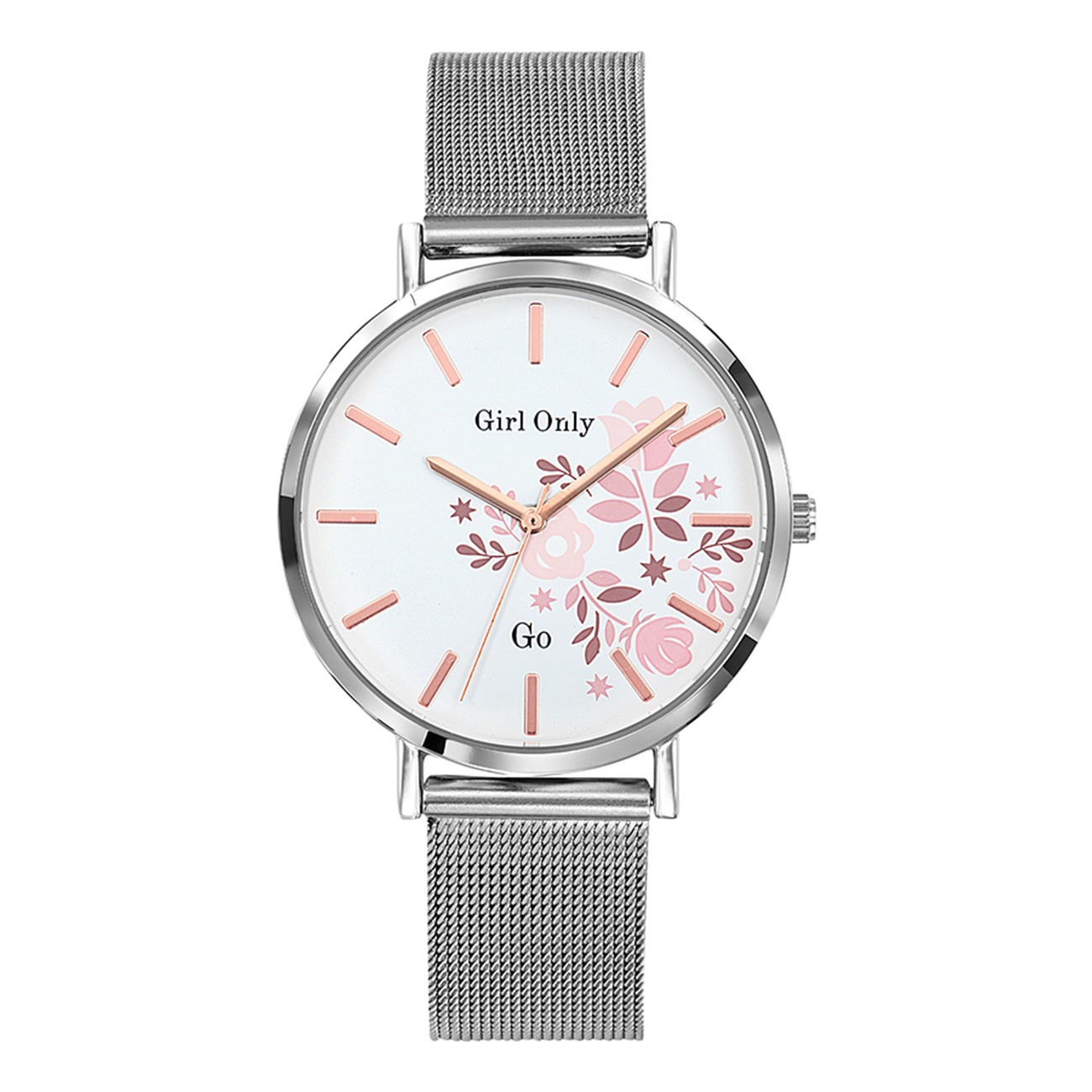 Damen Armbanduhr Girl Only Quarzwerk Blumenmuster Edelstahl Uhr Silber UGO695910