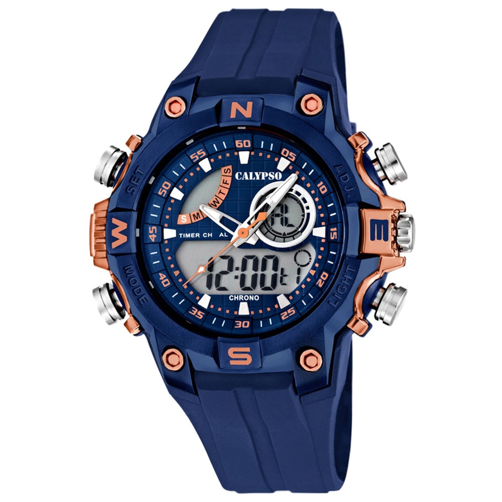 Calypso Digital Herren Uhr K5586/5 Armbanduhr Kunststoff PUR blau UK5586/5