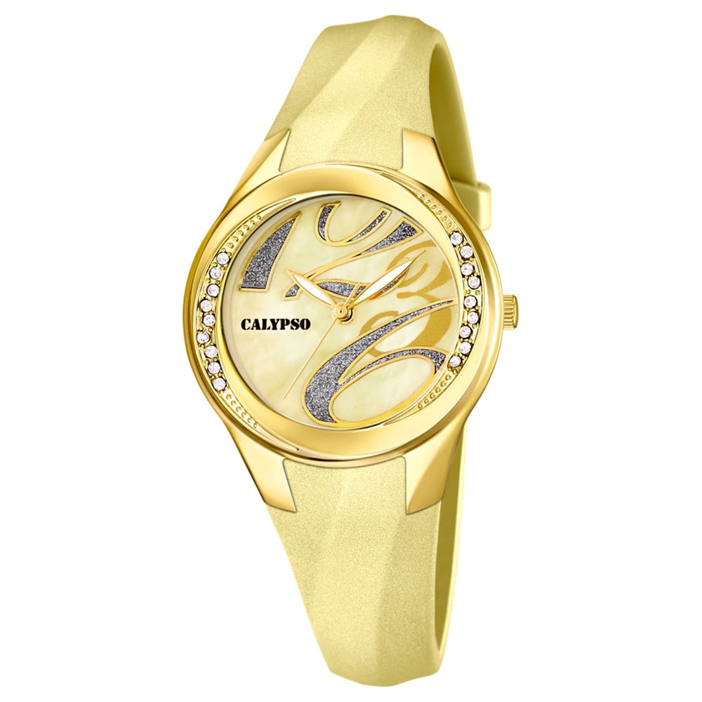 Calypso Analogico Damen Uhr K5598/9 Armbanduhr Kunststoff PUR gold UK5598/9