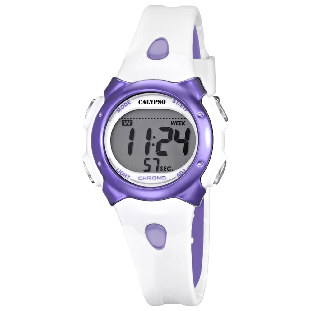 Calypso Digital Damen Uhr K5609/2 Armbanduhr Kunststoff PUR weiß lila UK5609/2