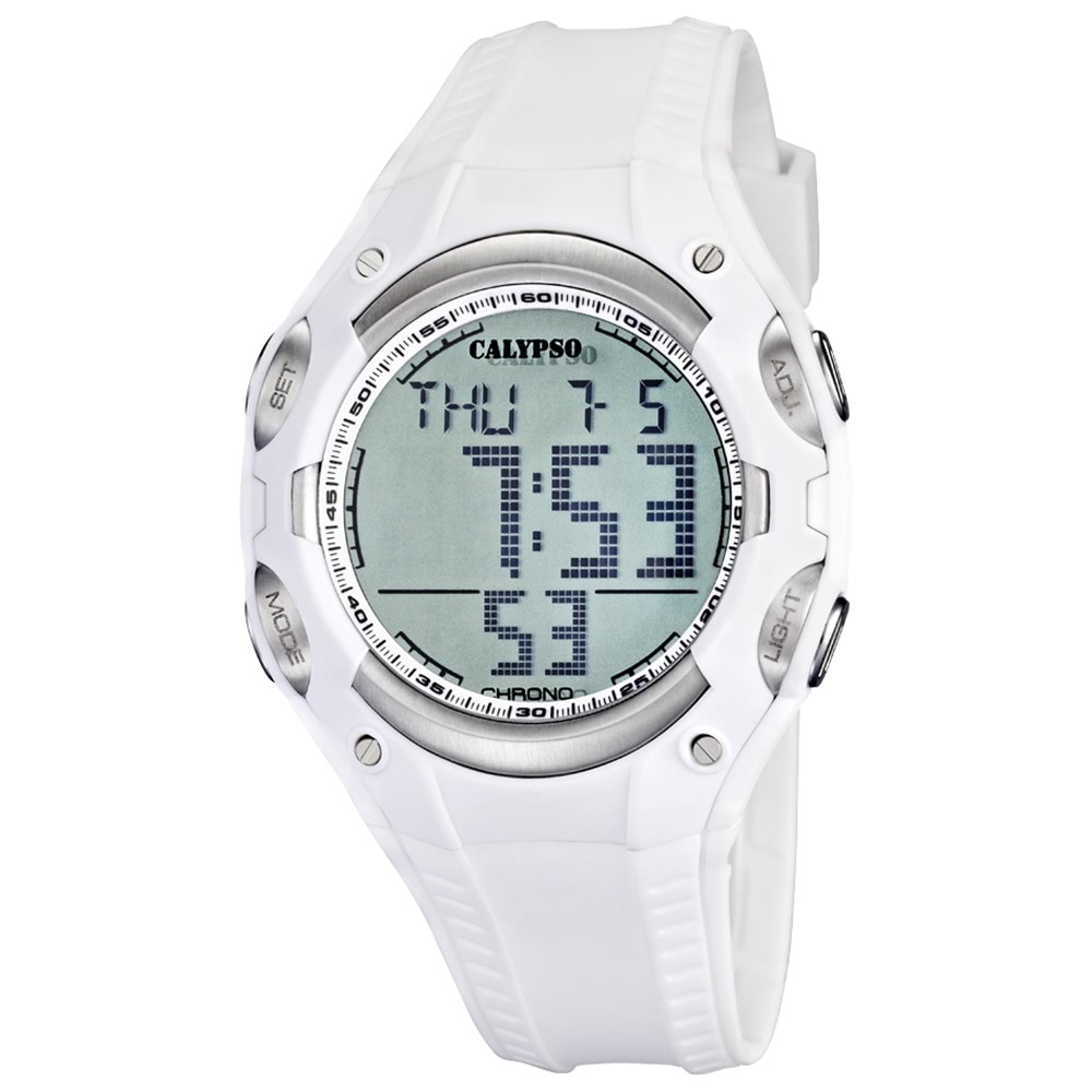 Calypso Digital Herren Uhr K5614/1 Armbanduhr Kunststoff PUR weiß beige UK5614/1