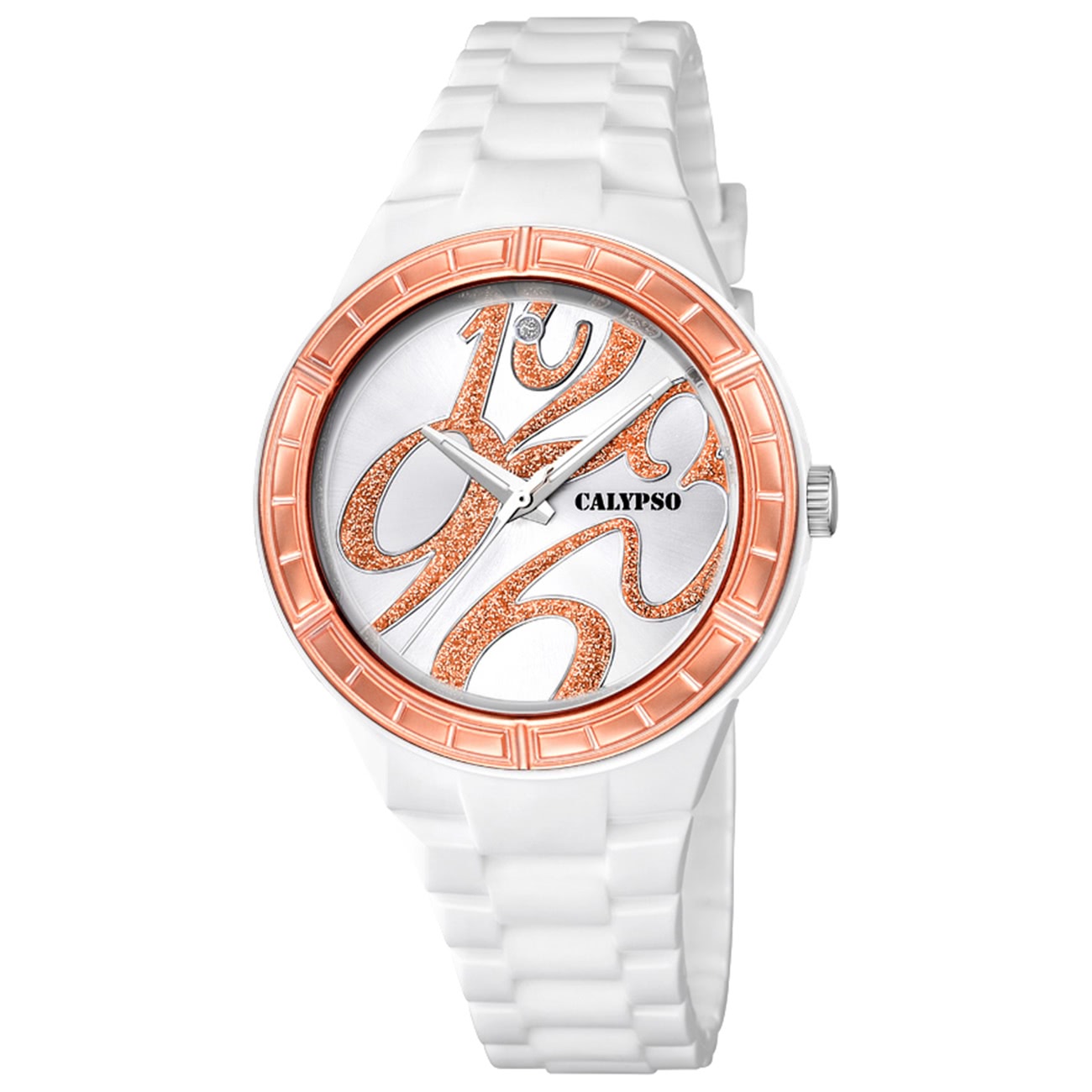 Calypso Analogico Damen Uhr K5632/5 Armbanduhr Kunststoff PUR weiß UK5632/5