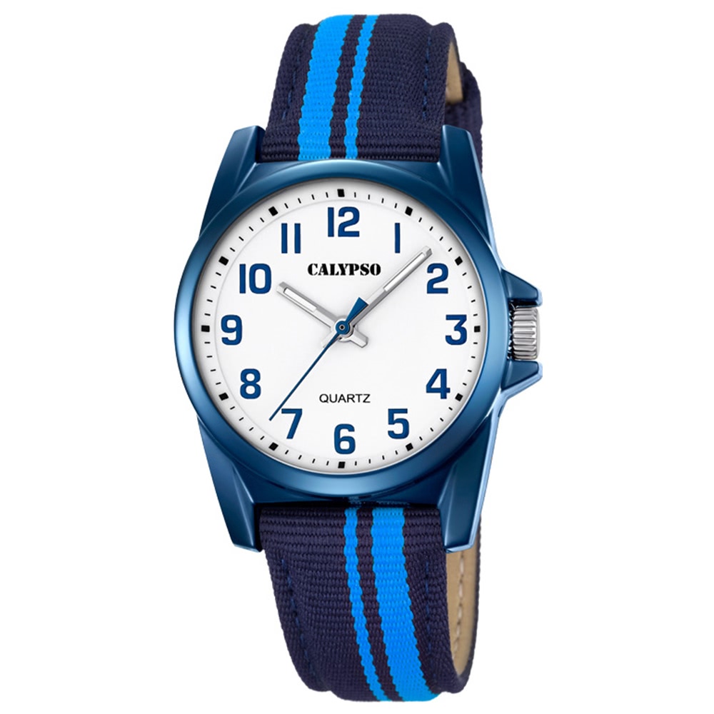 Calypso Analogico Kinder Uhr K5707/6 Armbanduhr Textil weiß blau UK5707/6