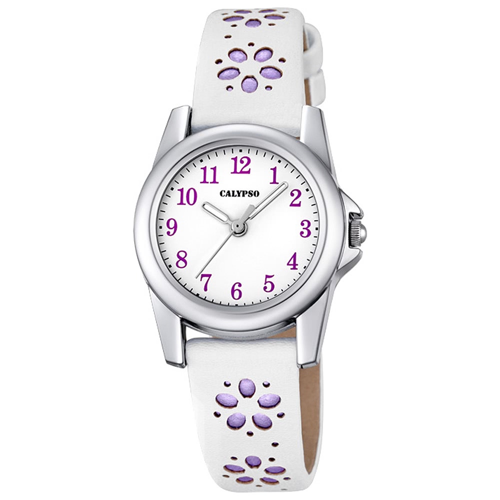 Calypso Analogico Kinder Uhr K5712/3 Elegant Armbanduhr Leder weiß lila UK5712/3