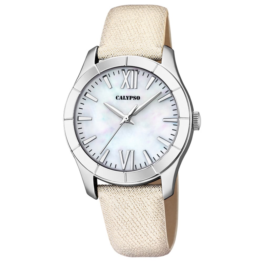 Calypso Analogico Damen Uhr K5718/1 Armbanduhr Leder Textil weiß UK5718/1
