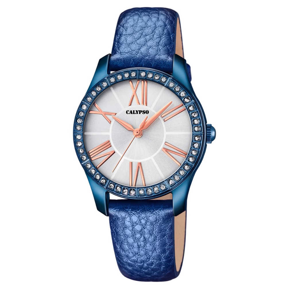 Calypso Analogico Damen Uhr K5719/2 Fashion Armbanduhr Leder blau UK5719/2