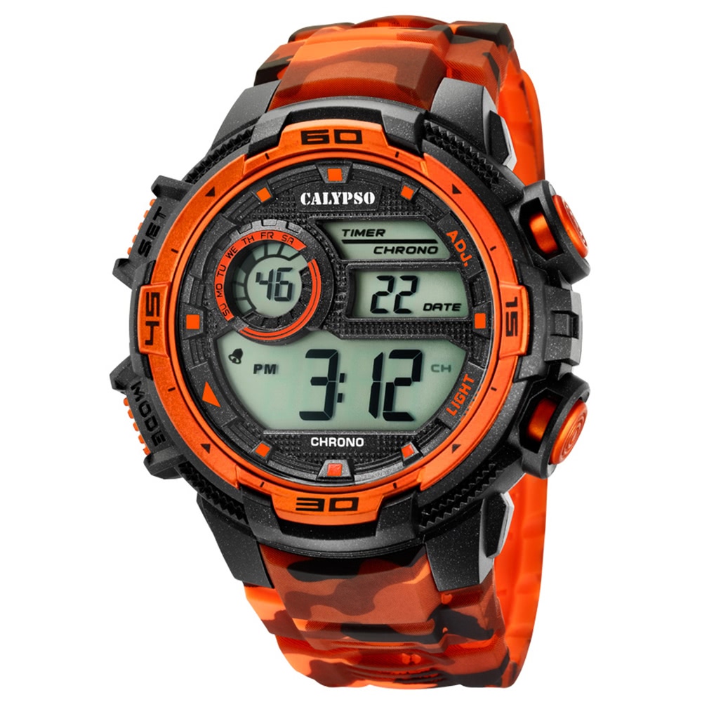 Calypso Digital Herren Uhr K5723/5 Armbanduhr Kunststoff schwarz orange UK5723/5