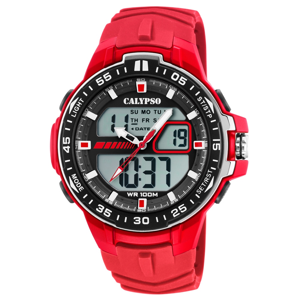 Calypso Digital Herren Uhr K5766/2 Sport Armbanduhr Kunststoff PU rot UK5766/2