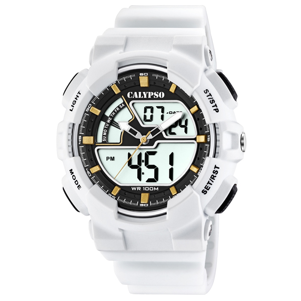 Calypso Digital Herren Uhr K5771/1 Sport Armbanduhr Kunststoff PU weiß UK5771/1