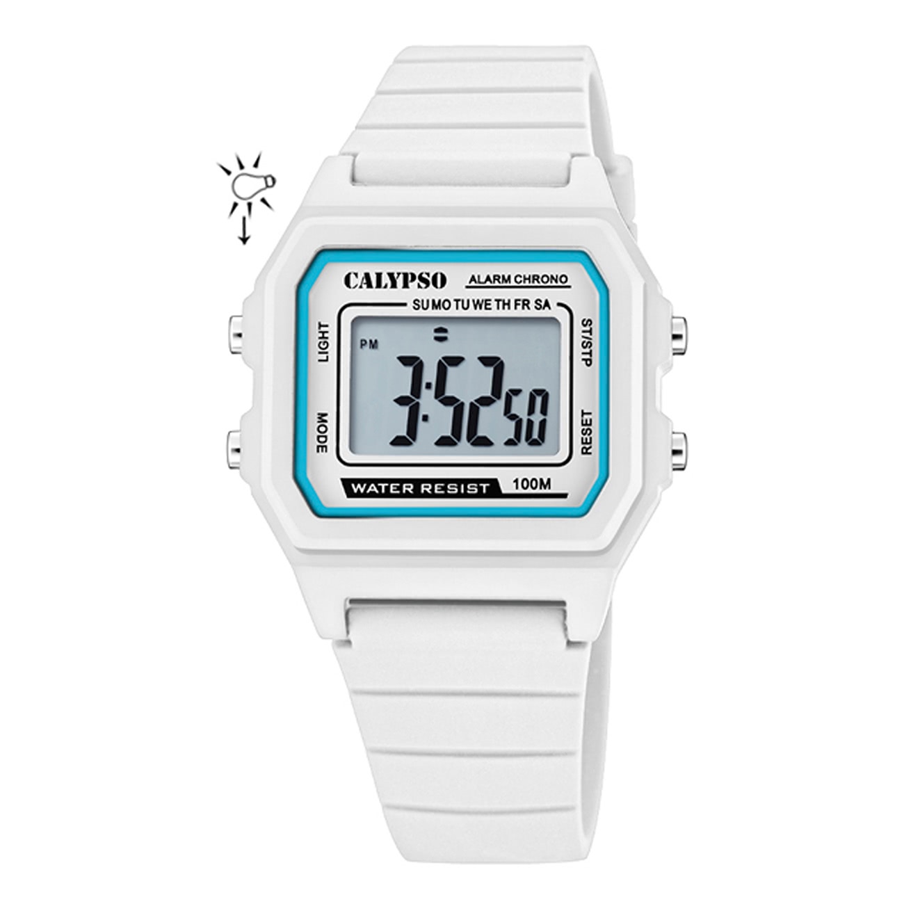 Calypso Herren Uhr K5805/1 Digital Armbanduhr Kunststoff weiß Sport UK5805/1